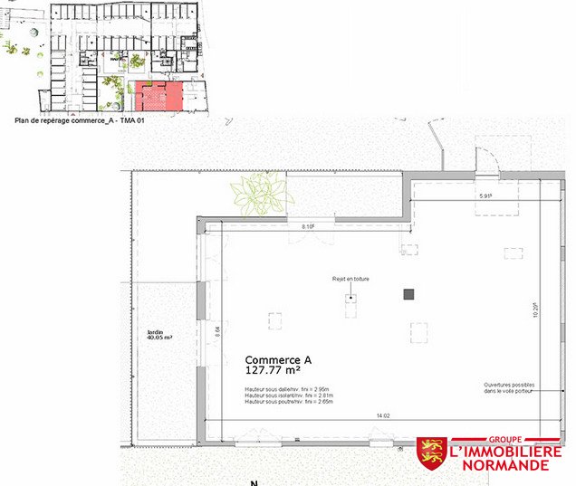 Local commercial de 127.77 m² au sein de la Résidence REVERSO située au centre de Louviers, à deux pas de la place Thorel avec vitrine en angle donnant sur la rue du 11 Novembre. Les charges de copropriété s’élèvent à 105€/mois incluant le chauffage, l’eau chaude, ascenseurs, gardien, entretien des parties communes. Plusieurs espaces partagés font de cette résidence un lieu du « bien vivre ensemble »: serre commune, terrain de pétanque, salon de plein air et une laverie. Ce complexe de 84 logements allant du studio au T3 avec parking sécurisé s’adresse à vous tous qui êtes en recherche d’une résidence principale ou d’un investissement locatif: Découvrez les avantages d’acheter un bien neuf et profitez des bénéfices d’un bien aux dernières normes, respectueux de l’environnement et économe en énergie. Vous pourrez également bénéficier de dispositifs fiscaux avantageux: PTZ, aides financières directes, TVA réduite, frais de notaire réduits, exonération de taxe foncière pour 2 ans. Honoraires à la charge du vendeur Les informations sur les risques auxquels ce bien est exposé sont disponibles sur le site géorisque: www.georisque.gouv.fr